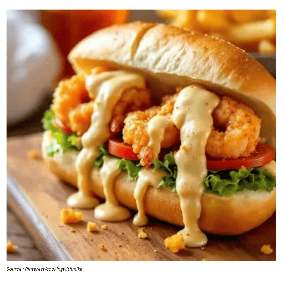 It’s also a recipe that welcomes personal preference without losing its identity. You can adjust how heavily you sauce the sandwich, explore different proteins, or expand the toppings. Yet the core remains recognizable: crispy fried seafood, a creamy New Orleans-style sauce, and a stack of fresh, crunchy elements inside French bread.