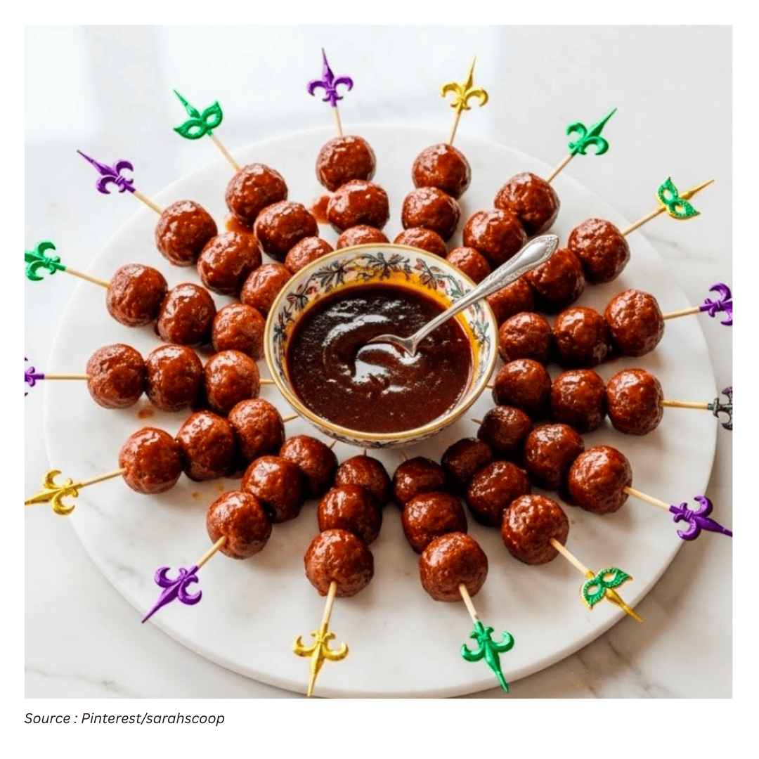 If you want your gathering to feel like a true Mardi Gras party, start with food that encourages casual snacking. Several dishes in this lineup take classic New Orleans ideas and reshape them into easy-to-grab formats—ideal for guests who are circulating, chatting, and going back for “just one more.”